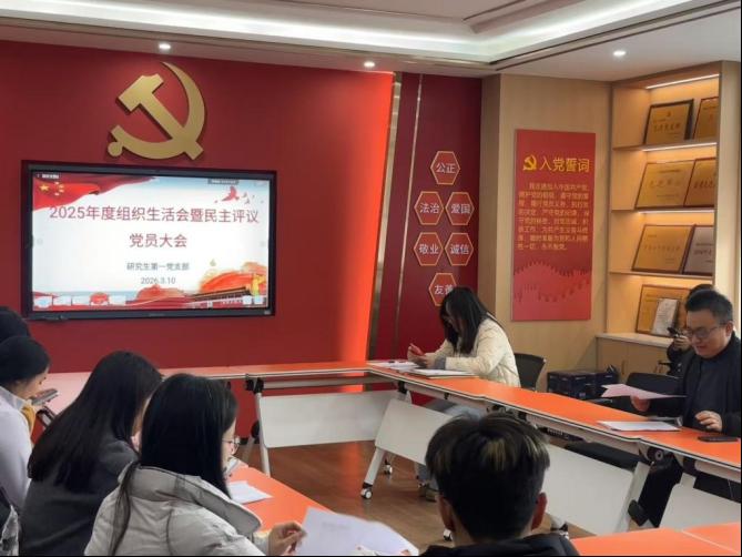 为进一步巩固党支部战斗堡垒作用,强化党员党性修养与使命担当,3月10日下午,研究生第一党支部在学院B210党员活动室召开2025年度组织生活会暨民主评议党员大会。学院党委书记雷先阳到会指导,党支部书记陈梦施主持会议,支部全体党员参加。