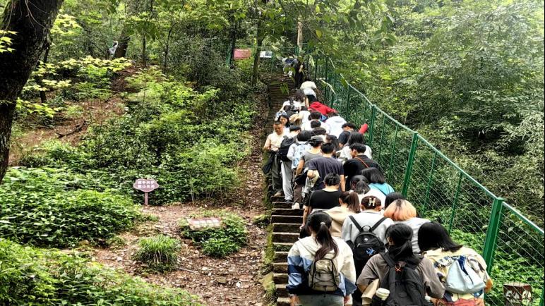 行至爱晚亭时,全体党员稍作休整,围绕登山感悟展开交流,在湖湘文化的浸润中厚植家国情怀,深切感受岳麓山承载的红色底蕴与人文内涵。